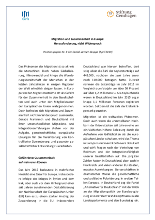 Das achte Positionspapier der Daniel-Vernet-Gruppe beschäftigt sich mit dem Themenkomplex Zuwanderung, Integration und Zusammenhalt in Europa. Migration wird in Europa oft als Bedrohung für den Zusammenhalt innerhalb der Gesellschaften, aber auch unter den Staaten wahrgenommen. In ihrem Positionspapier vertritt die Daniel-Vernet-Gruppe die Auffassung, dass Migration und Zusammenhalt nicht im Widerspruch zueinander stehen. Gleichwohl müssen sich insbesondere Deutschland und Frankreich darum bemühen, konstruktive Ansätze für europäische Antworten auf diese Herausforderung zu entwickeln.
