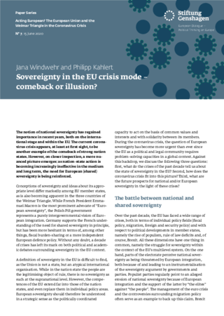 The notion of national sovereignty has regained importance in recent years, both on the international stage and within the EU. The current coronavirus crisis appears, at least at first sight, to be another example of the comeback of strong nation states. However, on closer inspection, a more nuanced picture emerges: as nation-state action is becoming increasingly ineffective in the medium and long term, the need for European (shared) sovereignty is being reinforced.