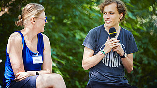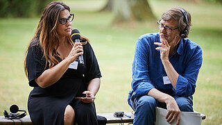 Dans un premier temps, Caitlin Southwick (Ki Culture) et Karim Selouane (Resallience) ont mis en lumière les possibilités de la résilience dans le cadre du changement climatique et de la durabilité. Parallèlement, Andreas Oldenbourg (Das Progressive Zentrum e.V.) et Tímea Junghaus (European Roma Institute for Arts and Culture) se sont penchés sur les démocraties en temps de crise. Dans un second temps, l’auteure syrienne Dima Albitar Kalaji (Wir machen das) et l’artiste ukrainienne Anna Scherbyna ont échangé sur la résilience dans le contexte de la guerre et de la fuite. L’activiste climatique Jakob Blasel (Fridays for Future) et la psychologue Magdalena Budziszewska (Université de Varsovie) ont échangé sur la capacité des jeunes à être résilients face à un avenir incertain.