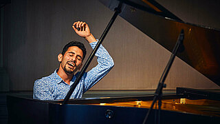 Après un aperçu du débat en Inde, pays particulièrement touché par le changement climatique, par l’auteur Siddhartha (Fireflies Intercultural Center), une discussion finale a eu lieu. Alexandra Klatt (Berlin Design Week), entre autres, y a abordé la question du rôle que peuvent jouer l’art et la culture dans les processus de résilience. Cette conférence internationale s’est clôturée sur un point d’orgue artistique : le concert du pianiste Aeham Ahmad, ponctué par la lecture de passages de son autobiographie.