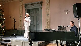Der diesjährige musikalische Salon wurde u. a. von der Berliner Sängerin Helena Goldt mit ihrem Programm „Auf ein herrlich verrücktes Leben!“, einem Mix aus Chansons, Schlagern und Eigenkreationen, gestaltet. Es begleitete sie der klassische und Jazzpianist Tal Balshai.
