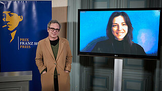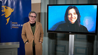 24. März 2022 - 1. Januar 1970Dorothee Elmiger („Aus der Zuckerfabrik“, Hanser) und Camille de Toledo („Thésée, sa vie nouvelle“, Verdier) wurde der deutsch-französische Franz-Hessel-Preis 2021 für zeitgenössische Literatur verliehen. Kulturstaatsministerin Claudia Roth und ihre französische Amtskollegin, Kulturministerin Roselyne Bachelot-Narquin, zeichneten die Autorin und den Autor am 24. März 2022 bei einer hybriden Preisverleihung im Schloss Genshagen aus.
