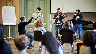 Mit dem Ansatz der KIWit-School soll dazu beigetragen werden, Zugänge in diese Institutionen zu erleichtern. Neben einem Bewerbungstraining standen bei der 2. KIWit-School künstlerische Workshops aus den Sparten Musik, bildende Kunst und Theater sowie Angebote zur Entwicklung der Soft Skills und Stärkung des Selbstbewusstseins auf der Agenda. Außerdem bot sich bei der KIWit-School die Gelegenheit zum Networking sowie die Möglichkeit mehr über die Finanzierung eines Studiums zu erfahren.