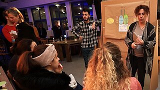Aufbauend auf dem Design Thinking geht es darum, am Beispiel des Jungen Schauspiels Düsseldorf Ansatzpunkte zur strukturellen Öffnung zu entwickeln. Darüber hinaus ist die Arbeitsweise so angelegt, dass sie sich auch auf andere Einrichtungen übertragen lässt. Inhaltlich fokussierte die vierte und damit vorletzte Denkwerkstatt am 16.01.2019 darauf, drei auf Bedürfnissen von Jugendlichen basierende Ideen für ein attraktives Theaterangebot so weiterzuentwickeln, dass sie am Ende der Veranstaltung öffentlich vorgestellt werden können.