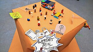 Auf diese Weise sollten interessierte Gäste nicht nur über die Arbeitspraxis der Denkwerkstatt und den aktuellen Stand der konzipierten Ideen informiert, sondern auch zur kritischen Reflexion eingeladen werden. Tatsächlich fanden alle Anwesenden schnell miteinander ins Gespräch und diskutierten sehr konkret und mit großem Engagement die präsentierten Modellentwürfe (Prototypen).