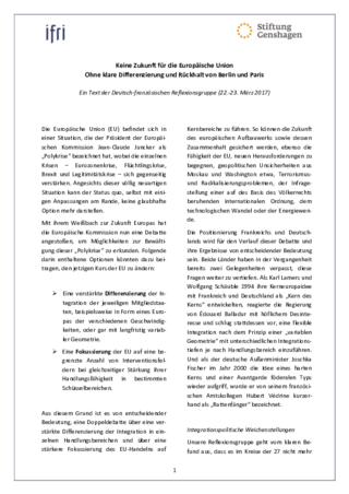 „Keine Zukunft für die Europäische Union ohne klare Differenzierung und Rückhalt von Berlin und Paris“