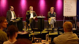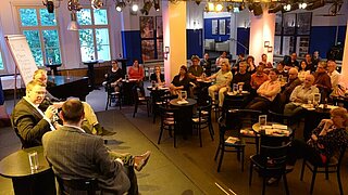 Bei der zweiten Veranstaltung im Theater neue Bühne Senftenberg traf Friedrich Rößiger, Teamleiter für Kommunikation und Marketing auf Marc Stickdorn, Upstalsboomer und Direktor im Landhotel Friesland/Varel, und fragte: "Wie gestaltet man nachhaltig ein motivierendes Arbeitsumfeld für unterschiedlichste Menschen?".