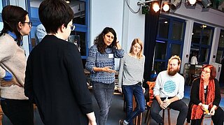 En s'appuyant sur le Design Thinking, l'objectif est de développer au Junges Schauspiel Düsseldorf des instruments pouvant servir de leviers pour permettre une ouverture structurelle. Cette méthode de travail est conçue de telle sorte qu'elle pourra être transférée à d'autres institutions, le Junges Schauspiel Düsseldorf faisant l'objet d'un projet pilote. Le 4ème et avant-dernier atelier de réflexion, qui a eu lieu le 16 janvier 2019, s'est concentré sur le développement de trois idées axées sur les besoins des jeunes, afin de pouvoir élaborer une offre de théâtre susceptible de les intéresser.