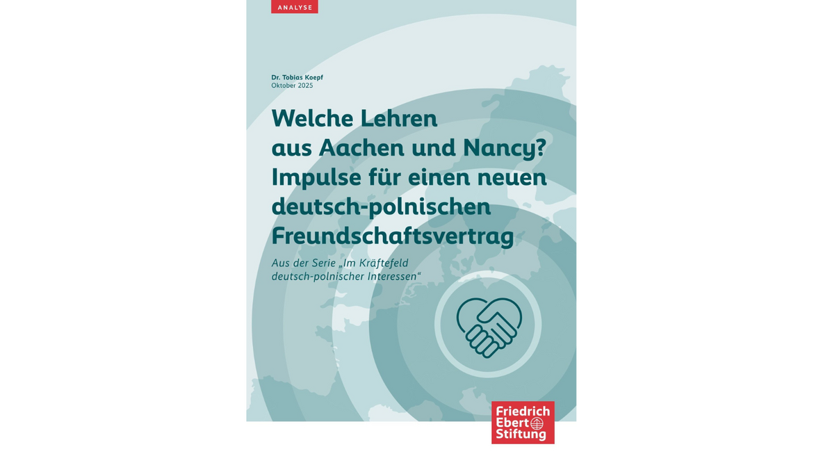 Dans une publication de la Fondation Friedrich-Ebert, notre directeur de projet Dr Tobias Koepf présente – sur la base des enseignements tirés du traité franco-polonais de Nancy (2025) ainsi que du traité franco-allemand d’Aix-la-Chapelle (2019) – plusieurs pistes pour la conception d’un nouveau traité de bon voisinage entre l’Allemagne et la Pologne.