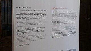 6 mars - 9 avril 2018Le Prix Karl Dedecius pour traductrices et traducteurs polonais de littérature germanophone et pour traductrices et traducteurs allemands de littérature polonaise est remis tous les deux ans par la Fondation Robert Bosch et l'Institut allemand de recherche sur la Pologne. Les lauréats sont sélectionnés par un jury germano-polonais et sont récompensés pour les liens linguistiques qu'ils tissent entre l'Allemagne et la Pologne. Le prix porte le nom du professeur Karl Dedecius (1921-2016), doyen des traducteurs de littérature polonaise et grand médiateur entre l'Allemagne et la Pologne. L'exposition présente les lauréats et rend hommage à l'éponyme du prix, Karl Dedecius. Elle a été présentée au Château de Genshagen du 6 mars au 9 avril 2018.