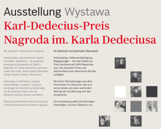 Le Prix Karl Dedecius pour traductrices et traducteurs polonais de littérature germanophone et pour traductrices et traducteurs allemands de littérature polonaise est remis tous les deux ans par la Fondation Robert Bosch et l’Institut allemand de recherche sur la Pologne. Les lauréats sont sélectionnés par un jury germano-polonais et sont récompensés pour les liens linguistiques qu’ils tissent entre l’Allemagne et la Pologne. Le prix porte le nom du professeur Karl Dedecius (1921-2016), doyen des traducteurs de littérature polonaise et grand médiateur entre l’Allemagne et la Pologne.
