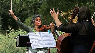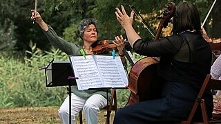 Le programme musical « Féérique - Musique fantastique illuminée par la lampe magique » avec Sara Rilling (alto), Ehrengard von Gemmingen (violoncelle), Marie Kogge (violon et narration) et Mahmood Amiri (tabla) a enchanté les enfants ainsi que leurs parents et grands-parents. La direction et l'équipe ont présenté le travail actuel de la fondation. A Genshagen, l'église du village, la distillerie historique et la maison des machines à vapeur étaient également ouverts à la visite.