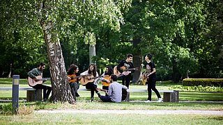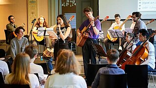 27 mai - 29 mai 2019En collaboration avec la Maison de la Poésie à Berlin et l'association pour l'intégration d'enfants réfugiés " MitMachMusik ", la Fondation Genshagen a réalisé un projet pilote d'éducation artistique et culturelle pour et avec des jeunes de la région. Dix élèves du lycée Leibniz à Potsdam et dix jeunes réfugiés, qui vivent dans le Brandebourg et font régulièrement de la musique dans le cadre de " MitMachMusik " avec des musiciens professionnels (eux-mêmes réfugiés et non réfugiés), ont participé à l'atelier musique et poésie sur le thème " Les nouvelles saisons ", qui s'est tenu du 27 au 29 mai 2019 au Château de Genshagen. Dans un premier temps, les jeunes se sont penchés de manière intensive sur leurs souvenirs (d'enfance) quant aux différentes saisons, aux phénomènes naturels, aux fêtes et rituels saisonniers en Europe et dans leurs différents pays d'origine. Beaucoup de jeunes se sont également concentrés sur le thème du changement climatique. Cette réflexion a été l'occasion d'un premier échange entre eux. Avec le soutien de la poétesse Karla Reimert Montasser, des poètes de slam Bas Böttcher et Dean Ruddock et du chanteur Sebastian Krämer, ils ont ensuite écrit des textes de spoken word, des chansons et des haïkus - de courts poèmes japonais - illustrant leurs associations avec le thème des " nouvelles saisons ". Tous les textes ont d'abord été rédigés en allemand ; les jeunes ont ensuite traduit certains textes en arabe ou en persan. En collaboration avec l'équipe musicale de MitMachMusik sous la direction de Marie Kogge, ils ont également composé un accompagnement musical. Le spectacle créé par les jeunes, alliant musique et poésie, a été présenté au public le 29 mai. Vous trouverez le recueil de poèmes " Die neuen Jahreszeiten " (Les nouvelles saisons) qui a été réalisé dans le cadre de l'atelier musique et poésie <link www.stiftung-genshagen.de/fr/publications/autres-publications.html - - "Ouvre un lien externe dans une nouvelle fenêtre">ici</link>. Partenaires : Association MitMachMusik, Maison de la Poésie Bailleur de fonds : Ministère des Sciences, de la Recherche et de la Culture du Land de Brandenbourg, Flughafen Berlin Brandenburg GmbH