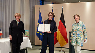 16 mars 2021 - 1 janvier 1970Lola Randl (« Der Große Garten », Matthes & Seitz Berlin) et Emmanuelle Pireyre (« Chimère », Éditions de l'Olivier) ont reçu le prix franco-allemand Franz Hessel 2020 de littérature contemporaine. La Déléguée du gouvernement fédéral à la Culture et aux Médias, Monika Grütters, a remis le prix à Lola Randl le 4 mars 2021 à la Chancellerie fédérale à Berlin. Son homologue française, la ministre de la Culture Roselyne Bachelot-Narquin, a remis le prix à Emmanuelle Pireyre le 26 février 2021 à la Villa Gillet à Lyon. Exceptionnellement, en raison de la pandémie du coronavirus, une cérémonie de remise de prix commune n'a pas pu avoir lieu.