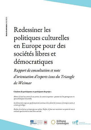 Elle a été élaborée par des experts du Triangle de Weimar et s’appuie sur le projet européen « Shaping Cultural Policies in Europe for Free and Democratic Societies », auquel ont participé vingt experts et chercheurs de sept pays européens en juin 2025 au château de Genshagen. Le projet a été réalisé dans le cadre d’une collaboration entre la Fondation Genshagen, l’ifa – Institut für Auslandsbeziehungen et la chaire UNESCO « Cultural Policies for the Arts and Transformation » de l’Université de Hildesheim.