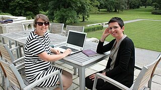 L’auteure autrichienne Carolina Schutti et la traductrice polonaise Ewa Mikulska-Frindo. L’auteure et la traductrice se sont consacrées pendant leur séjour à Genshagen à la traduction polonaise du dernier roman de Carolina Schutti « Der Himmel ist ein kleiner Kreis » (Droschl, 2021). Elles se sont également penchées sur d’autres textes de l’auteure.