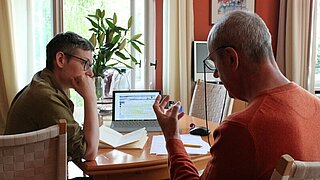 Au cours de la résidence, un entretien animé par Charlotte Stolz a eu lieu avec chacun des tandems. Dans les trois podcasts que vous trouverez plus bas (réalisés en allemand), vous en apprendrez plus sur les auteures, leurs traductrices et traducteurs, leurs œuvres et leurs coopérations.