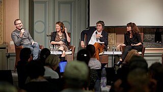 L'auteure germano-ukrainienne Katja Petrowskaja était malheureusement tombée malade ce jour-là et ne put pas participer au débat. Sous l'animation de Manfred Sapper, rédacteur en chef du magazine " Osteuropa ", les trois panélistes discutèrent de l'instrumentalisation des cultures mémorielles par la politique. Ils thématisèrent particulièrement la césure que représente 1989 : alors que l'Allemagne de l'Ouest s'est intensément confrontée à l'histoire de l'Holocauste au cours des années 1980, la plupart des pays d'Europe centrale et orientale n'ont pu traiter plus intensément leur histoire qu'après le tournant de 1989 et l'ouverture des archives. Et d'autres thèmes historiques apparurent pour eux au premier plan.