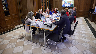 Dans le cadre d’une table ronde publique organisée à l’issue du colloque, les professeurs Olivier Beaud, Nikolas Eisentraut et Piotr Nowak ont résumé les principales conclusions du colloque et ont discuté avec Bettina Stark-Watzinger, ministre fédérale de l’Éducation et de la Recherche, des principaux défis pour la liberté académique et des stratégies d’action possibles. La ministre a notamment souligné que l’université est une maison du savoir qu’il convient de défendre en Europe. La discussion était animée par Dorothee Nolte, journaliste au Tagesspiegel.