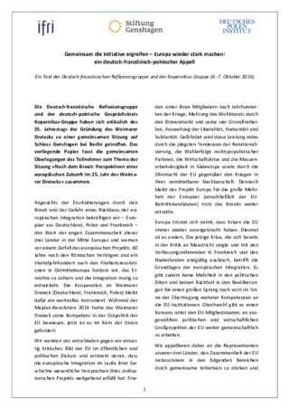 „Wspólnie podjąć inicjatywę –uczynić Europę ponownie silną:polsko-niemiecko-francuski apel“