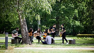 27 maja - 29 maja 2019We współpracy z Domem Poezji (Haus für Poesie) i stowarzyszeniem MitMachMusik - droga do integracji dzieci z doświadczeniem uchodźctwa e.V. (MitMachMusik - ein Weg zur Integration von Flüchtlingskindern e. V.) Fundacja Genshagen opracowała pilotażowy projekt edukacji kulturalnej dla i z młodzieżą z regionu. W warsztatach poezji muzycznej na temat "Nowe pory roku", które odbyły się w dniach 27-29 maja 2019 roku w Pałacu Genshagen wzięło udział 10 uczniów z gimnazjum im. Leibniza w Poczdamie oraz 10 młodych ludzi z doświadczeniem uchodźctwa, którzy mieszkają w Brandenburgii i regularnie śpiewają i tworzą muzykę w ramach projektu MitMachMusik. Dzieci pracują na codzień z profesjonalnymi muzykami z Niemiec oraz z muzykami mającymi doświadczenia uchodźctwa. Początkowo młodzi ludzie intensywnie zajmowali się wspomnieniami (z dzieciństwa), porami roku, zjawiskami naturalnymi oraz sezonowymi rytuałami i uroczystościami w Europie i w swoich krajach ojczystych i w ten sposób wymieniali swoje obserwacje i doświadczenia. Wielu młodych ludzi skupiło się również na temacie zmian klimatycznych. Wspierani przez poetkę Karlę Reimert Montasser, poetów slamowych Basa Böttchera i Deana Ruddocka oraz piosenkarza Sebastiana Krämera, pisali o swoich skojarzeniach z "nowymi porami roku" teksty mówione, piosenki oraz haiku - krótkie japońskie wiersze. Wszystkie teksty były początkowo napisane w języku niemieckim, następnie młodzież tłumaczyła część tekstów na język arabski lub perski. Wraz z zespołem muzycznym MitMachMusik pod kierownictwem Marie Kogge opracowali i skomponowali towarzyszący program muzyczny. Muzyczno-poetycki spektakl opracowany wspólnie przez młodych ludzi został zaprezentowany publiczności 29 maja. Partnerzy: Stowarzyszenie MitMachMusik, Dom Poezji Instytucja finansująca: Ministerstwo Nauki, Badań i Kultury Kraju Związkowego Brandenburgia, Flughafen Berlin Brandenburg GmbH