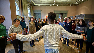 W europejskich warsztatach edukacja kulturalna łączy się z praktyką sztuki (teatr/taniec/performance) i w ten sposób wprowadza do gry procesy negocjacyjne, które postrzegać można jako ćwiczenie w radzeniu sobie z konfliktami, będącymi istotnym elementem dzisiejszej demokracji. W takich międzykulturowych projektach przekraczane są granice na wielu poziomach. Uczestnicy konfrontowani są z czymś, co jest zupełnie inne i obce; zrywają z rutyną i codziennością. W jaki sposób pogodzić własny i obcy światopogląd? Jak radzimy sobie z opiniami innych i jak odnajdujemy własne indywidualne stanowisko – a następnie zbiorową ekspresję we wspólnym występie?
