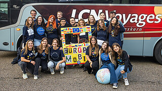 11 września - 6 października 2023Od 11 września do 6 października 2023 r. nasz Europamobil był po raz pierwszy w trasie we francuskim regionie Grand Est i dotarł do ponad 3000 uczniów w 11 szkołach. 20 studentów z 13 różnych krajów podzieliło się swoją wiedzą, pomysłami i entuzjazmem wokół tematu "Europa" podczas warsztatów, zabaw symulacyjnych i dyskusji z ponad 3000 uczniami.