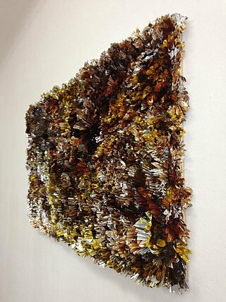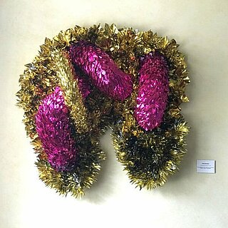 Die im Schloss Genshagen ausgestellten Werke sind Teil der Ausstellungsreihe "La Vie Liquide" - der Welt, in der alles fließt. In dieser geht sie auf die These des polnisch-englischen Soziologen und Philosophen Zygmunt Bauman, eines epochalen gesellschaftlichen Übergangs von einer stabilen, auf materiellen Produkten basierenden Moderne hin zu einer fluiden, auf Software basierenden Moderne, ein. Cécile Wesolowski reagiert auf diese neuen Strömungen der Lebensverhältnisse, indem sie die Phänomene dieses fluiden, digitalen Anthropozäns aus eigener Perspektive neu kombiniert, sie dabei überhöht und gleichzeitig hinterfragt. Goldene Überlebensdecken werden in zeitaufwendiger Handarbeit zu Blumendekors transformiert; gefaltetes Metall wird mit immateriellen Lichtspielen kombiniert und dekonstruiert somit scheinbar banale Widersprüche der Konsumgesellschaft. Mit viel Fantasie und Humor werden vormals profane Konsumobjekte in Szene gesetzt, die nun plötzlich Glanz, Glamour und Wert suggerieren. In dieser Fusion der einstigen Gegenstände werden alle zu Symbolträgern eines entfremdeten Verhältnisses zwischen Mensch und Natur und gleichzeitig zu Neu-Geschöpfen in einer künstlerischen Landschaft.