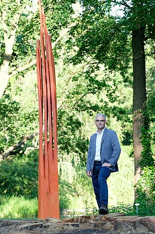 Der Grundgedanke für die Plastik besteht darin, einen Teil der gefallenen Eiche als konstruktive Figur am ehemaligen Standort wieder auferstehen zu lassen.