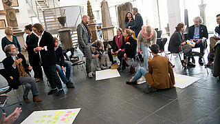 Im Rahmen einer Denkwerkstatt am Jungen Schauspiel Düsseldorf haben Akteurinnen und Akteure aus Kultur, Wirtschaft und Stadtgesellschaft eine Arbeitsweise entwickelt, die es heterogenen Gruppen erlaubt, ohne professionelle Moderation in kurzer Zeit zu konkreten Ideen zu kommen.