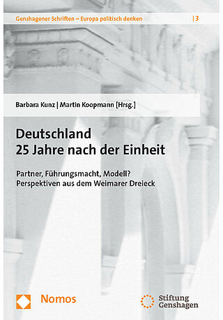 Der dritte Band der Genshagener Schriften <link www.nomos-shop.de/26278>Deutschland 25 Jahre nach der Einheit: Partner, Führungsmacht, Modell? – Perspektiven aus dem Weimarer Dreieck</link> erschien im Februar 2016. In diesem Sammelband blickt eine Gruppe namhafter Autorinnen und Autoren auf Deutschland 25 Jahre nach der Wiedervereinigung und fragt, was das heutige Deutschland ausmacht, wohin es sich entwickelt und vor allem, wie Deutschlands Nachbarn Frankreich und Polen die Entwicklung der Bundesrepublik seit der Wiedervereinigung wahrnehmen.Um diesen Fragen nachzugehen werden in dem Buch fünf relevante politische und gesellschaftliche Bereiche (Deutschland in Europa und Europa in Deutschland; Deutschlands Rolle in der Welt; Deutschsein heute: individuelle Teilhabechancen; Wirtschaft und Gesellschaft; die Berliner Republik und ihre Werte) aus jeweils drei nationalen Sichtweisen beleuchtet, mit je einer Innenansicht eines deutschen Autors und zwei Außenansichten eines französischen und eines polnischen Autors.