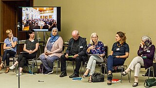 In insgesamt vier Workshops wurde diskutiert, was passieren muss, damit migrantische Communities als kulturelle Mitgestalter wahrgenommen werden und wie sich erfolgreiche Modelle der diversitätssensiblen Nachwuchsförderung aus der Wirtschaft auf den Kulturbereich übertragen lassen. Darüber hinaus ging es um die Fragen, was Diversität im ländlichen Raum bedeutet und wie Diversität in einer Organisation implementiert werden kann.