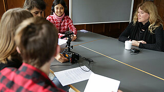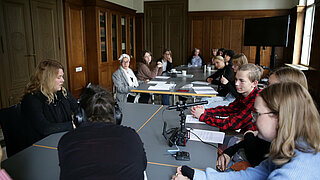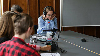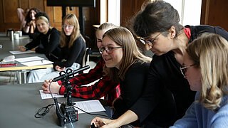 In den Herbstferien nahmen Jugendliche aus Berlin und Brandenburg im Alter von 14 bis 18 Jahren an einem dreitägigen Workshop zum Thema „Umgang mit Diktatur“ im Schloss Genshagen teil. Mit Unterstützung der Historikerin Dr. Juliane Haubold-Stolle von der Stiftung Berliner Mauer, der Filmemacherin und Journalistin Schokofeh Kamiz sowie der Schriftstellerin Annett Gröschner, befassten sich die Jugendlichen insbesondere mit Diktaturerfahrungen in der DDR und in Syrien, lernten, wie man themenbezogen in einem Archiv recherchiert, Interviews mit Zeitzeug*innen führt und einen Podcast produziert. Dabei setzten sie sich intensiv mit dem Thema Diktatur auseinander, erarbeiteten, worin sich Diktaturerfahrungen unterscheiden, aber auch, was sie gemeinsam haben. Die Ergebnisse und Podcast-Episoden mit den Zeitzeug*innen Anne Hahn (Autorin), Sam Zamrik (Lyriker, Übersetzer und Musiker) und Dima Albitar Kalaji (Autorin und Journalistin) werden auf der Webseitehttps://lebendiges-archiv.jetzt/ veröffentlicht und am 5. Dezember von 17-19 Uhr im Schloss Genshagen der Öffentlichkeitpräsentiert.