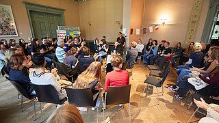 9. September - 28. September 2024Europamobil ist ein Projekt für Schüler*innen und Studierende, bei dem 20 Student*innen aus Ländern der EU Schulen in einer jährlich wechselnden Region in Europa besuchen, um mit Schüler*innen Workshops zum Themenkomplex „Europa“ durchzuführen. Dazu hatten sie vom 9. bis 15. September im Rahmen eines Vorbereitungsseminars im Schloss Genshagen verschiedene Methoden erarbeitet. Im Anschluss an die insgesamt neun Schulbesuche vom 16. bis 26. September wurden die Ergebnisse und Erfahrungen am 27.09. bei einer Abschlussdebatte präsentiert und u. a. mit Heiner Klemp, MdL, europapolitischer Sprecher der Fraktion von Bündnis90/Die Grünen, sowie mit den europäischen Studierenden, Schüler*innen aus Brandenburg und Lehrkräften diskutiert.