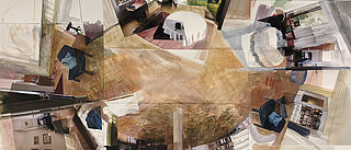 In der Serie „Halbwissen“ beschäftigt sich Katharina Reinsbach mit fiktionalisierten Bildräumen, deren Ausgangspunkt kleine, ausgedruckte Ausschnitte ihrer eigenen Handyfotos sind. Ihr Hauptinteresse liegt dabei auf der Beziehung zwischen Zeichnung und dem physischen oder historischen Raum, den sie erforscht. Sie reflektiert darüber, wie Bilder und Bildräume im Allgemeinen als Mittel fungieren können, um Betrachter*innen die Möglichkeit zu geben, Beziehungen zu unbekannten Bildräumen herzustellen oder sich gedanklich in sie hineinzuversetzen. Zeichnung ist für sie ein Werkzeug, um kollektive Wahrnehmungen von Räumen zu hinterfragen und ihre eigene Position in ihnen zu klären. Ihre Zeichnungen entstehen dabei stets aus einem Wechselspiel zwischen ihren eigenen Beobachtungen räumlicher Gegebenheiten und einer aktiven fiktionalen Auseinandersetzung mit Erlebtem, das unmittelbar mit dem Raum verbunden ist.
