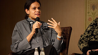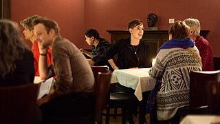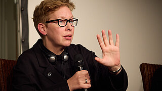 Das Kollektiv Le Bruit Qui Court eröffnete den Abend mit der Uraufführung einer Performance. Das „Artivisten“-Kollektiv erprobt kreative und gemeinschaftliche Widerstandsformen, um soziale und ökologische Gerechtigkeit zu fördern und Resonanzräume für gesellschaftliche Auseinandersetzungen zu schaffen. Im Anschluss an diesen künstlerischen Impuls moderierte der Journalist Jean Peters eine Podiumsdiskussion mit der Kulturwissenschaftlerin Dr. hab. Ewa Majewska, der Kuratorin Dr. Mahret Kupka, der Artivistin Clara Thuelin und der Schriftstellerin Manja Präkels. Die Podiumsgäste debattierten über Wege und Wirkung von künstlerischem Aktivismus, um Einfluss auf öffentliche Auseinandersetzungen zu nehmen.