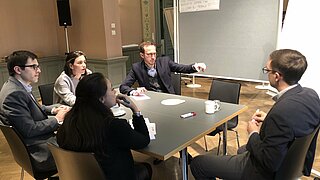 Am Beginn der Veranstaltung stand ein Treffen der ca. 15 Teilnehmenden - allesamt junge Expertinnen und Experten aus Deutschland, Frankreich und Polen - mit Jörn Beissert, dem Leiter des China-Referats im Auswärtigen Amt. Er stellte die deutsche Sicht auf die Beziehungen zwischen der EU und China dar und gab aus einer politisch-praktischen Perspektive Anregungen für die Workshop-Diskussionen.